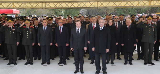 Ardından, TMT Anıtı’na protokol sırasına göre çelenk sunuldu, İstiklal Marşı eşliğinde bayraklar önce göndere çekildi ve yarıya indirildi. Tören sırasında sirenler de çaldı.
