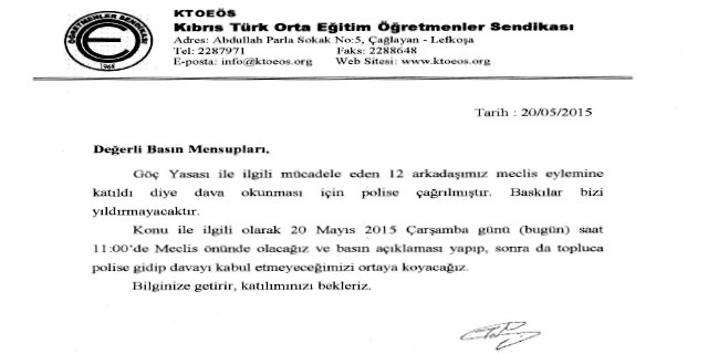 Bugüne kadar baskılara boyun eğmediklerini, bundan sonra da eğmeyeceklerini ifade eden Gökçebel, yasaya karşı mücadele eden öğretmenlerin meclis eylemine katıldığı gerekçesiyle dava okunması için polise çağrıldığını kaydetti.