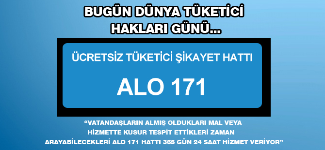 Vatandaşların almış oldukları mal veya hizmette bir kusur tespit ettikleri zaman Bakanlığa bağlı Ticaret Dairesi bünyesinde kurulan “ALO 171” telefon hattını, ister ev, isterse cep telefonlarından arayabildiği belirtilen mesajda, hattın 365 gün 24 saat hizmet verdiği ifade edildi.
