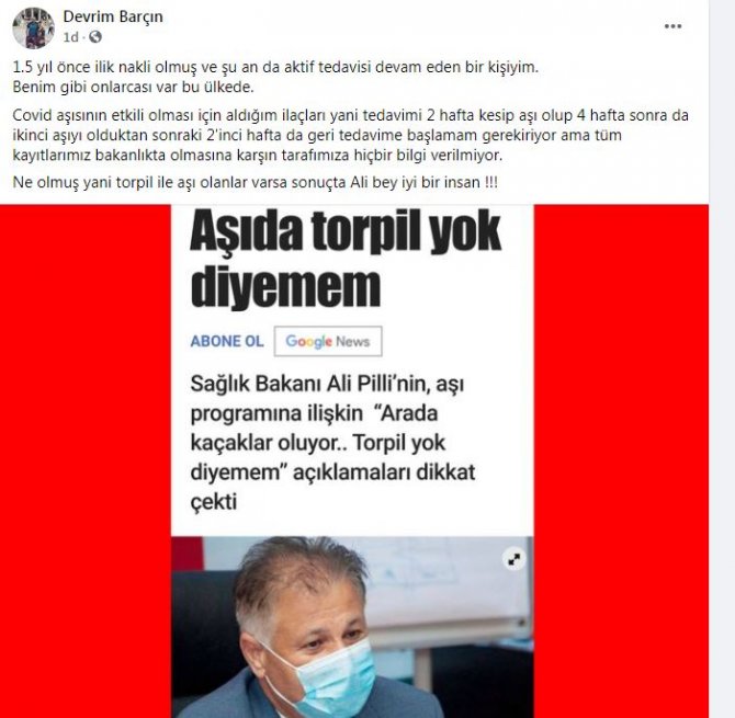 Ne olmuş yani torpil ile aşı olanlar varsa sonuçta Ali bey iyi bir insan !!!
