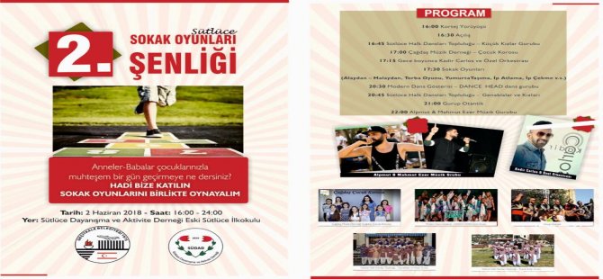 Sütlüce Dayanışma ve Aktivite Derneği’nin Geçitkale Belediyesi’yle işbirliği içerisinde organize ettiği “2. Sokak Oyunları Şenliği” 2 Haziran Cumartesi günü yapılıyor.