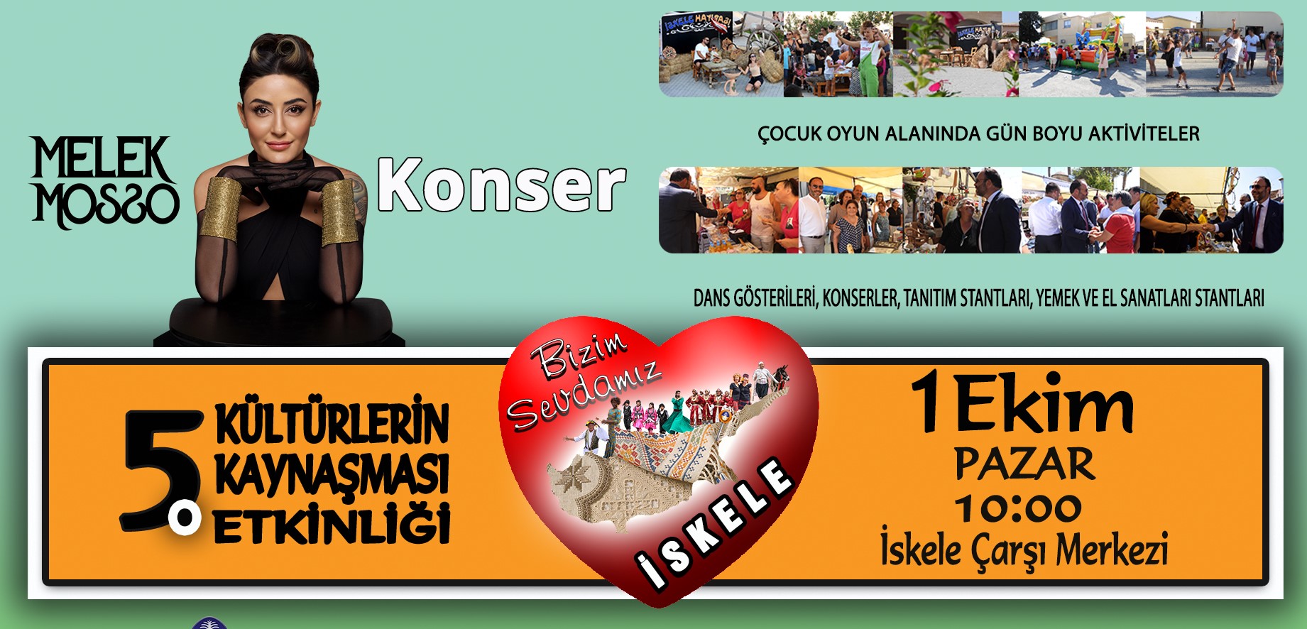 İskele Belediyesi 5. Kültürlerin Kaynaşması Etkinliğinde konserler de olacak. Yerli sanatçılarımız Grup OTANTİK ve Retro Çalgıcılarının yanı sıra Cuba Music Group ve İran Müzik Grubu’ da konser vereceği etkinliğin final konserinde ise sahneye, şarkıcı Melek Mosso çıkacak. Kuzey Kıbrıs Türk Cumhuriyeti’nde vereceği ilk halk konserinde dinleyicileri ile buluşacak Mosso, saat 21.00’da İskele Çarşı Merkezi’ne kurulacak sahnede sevilen şarkılarını seslendirecek.