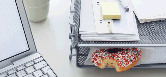 Slim By Design kitabının yazarı Brian Wansink, yiyecekler göz önünde durduğu takdirde iki kat fazla tüketileceklerini söylüyor. O yüzden, iş arkadaşlarının şekerlemeler ve çikolatalarla dolu kutularının mümkün olduğunca uzağına oturmak gerekiyor. Bir şeyler ikram edilmeye çalışıldığında ya da tüm herkes şekerlemelere ‘saldırdığında’, lavabonun yolunu tutarak ortamdan uzaklaşmak en iyi alternatif olarak karşımıza çıkıyor.