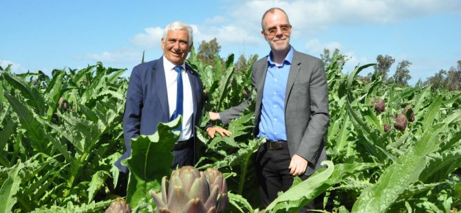 AB yetkilileri, arıtılmış atık suyun tarımsal amaçlı kullanım projesi dahilinde uygulamaya başlanan enginar üretimi pilot projesini de yerinde inceleyerek bilgi aldı.