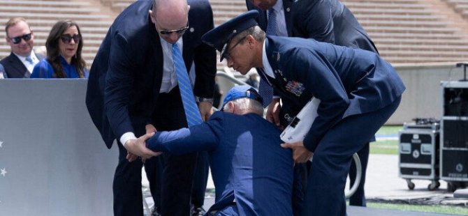 ABD Başkanı Biden, Colorado’daki ABD Hava Kuvvetleri Akademisi öğrencileri için düzenlenen mezuniyet töreninde yaptığı konuşmanın ardından öğrencilere diplomalarını takdim ettikten sonra sahnede ayağı takılarak dengesini kaybetti ve yere düştü.