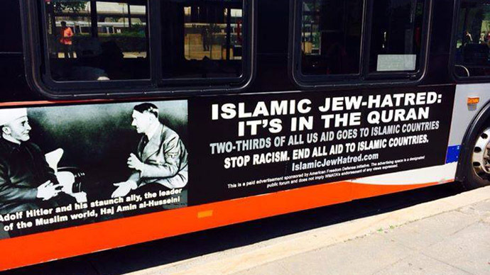 Reklam ücretini ABD'deki İsrail yanlısı örgütlerden Amerika Özgürlükleri Savunma İnisiyatifi'nin (AFDI) ödediği ve bir ay boyunca Philadelphia'daki 84 halk otobüsüne yapıştırılacak afişler, İslam ve Nazi ideolojisi arasında bağ kuran mesajlar içeriyor.
