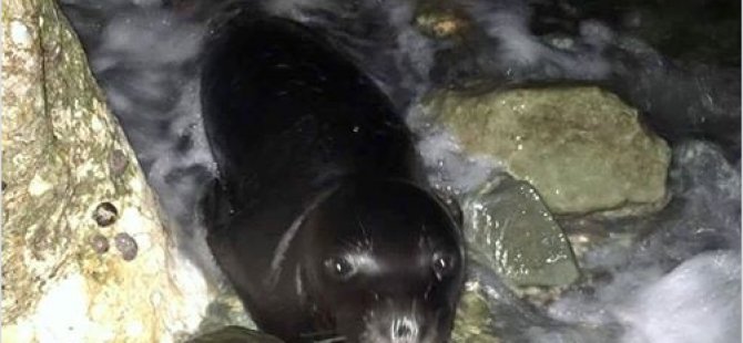 Hasan Karlıtaş tarafından paylaşılan fotoğrafta yavru bir akdeniz fokunun Gemikonağı sahillerine uğradığı görülüyor.