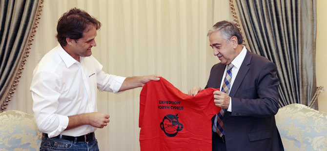 Celen, Cumhurbaşkanı Akıncı’ya Belçika’dan Kuzey Kıbrıs’a gelirken geçtikleri 9 ülkede dağıttıkları üzerinde “Kuzey Kıbrıs’ı Keşfedin” yazılı tshirt ve etkinlik için yazılan çerçevelenmiş bir  de şiir hediye etti.