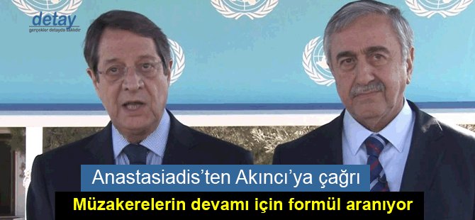 Kıbrıs sorununa çözüm bulmak amacıyla yürütülen müzakerelerde yaşanan kriz gündemde kalmaya devam ederken Rum Yönetimi Başkanı Nikos Anastasiadis’in, gelecek haftaki liderler görüşmesine katılması için Cumhurbaşkanı Mustafa Akıncı’ya çağrıda bulunduğu belirtildi.