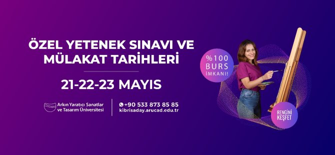 ARUCAD’ın düzenleyeceği Özel Yetenek Sınavı ve Mülakatlara, KKTC vatandaşı olan ve/veya lise öğrenimini kesintisiz 4 yıl boyunca KKTC’de tamamlayan TC Uyruklu tüm adaylar başvuruda bulunabilecek. Adaylar, 21-22-23 Mayıs’taki Özel Yetenek Sınavı ve Mülakatlara, Üniversitenin Kampüsünde katılarak %100’e varan burs imkanlarından yararlanabilecek.