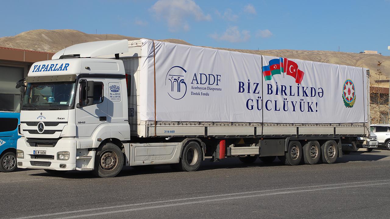 Azerbaycan Diaspora Komitesi Destek Fonunun hazırladığı 18 tonluk yardım malzemelerini taşıyan tırlar, başkent Bakü’den yola çıktı.