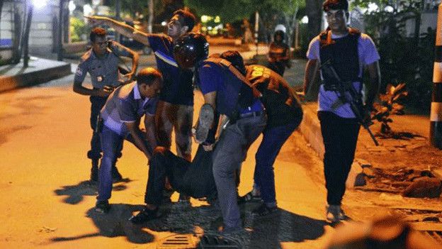 Saldırıdan kaçan kafe çalışanı Sumon Reza Jamuna TV kanalına, saldırganların 'Allahu Ekber' diye bağırdığını söyledi.