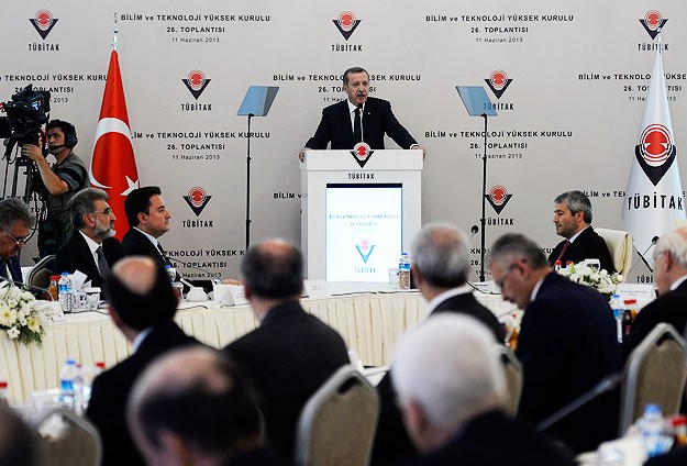 ANKARA Başbakan Erdoğan, toplantının açılışında yaptığı konuşmada, alınacak kararların Türkiye ve dünya için hayırlara vesile olacağına inandığını söyledi.  "Düne kadar her şeyiyle dışa bağımlı olan Türkiye'nin bugün kendi ihtiyaçlarını karşılamanın ötesinde alternatif bir üretici ve bir ekonomi olarak küresel sistemde yerini almaya başlamasından rahatsız olanlar bulunduğunu biliyoruz. Bu rahatsızlığın çok farklı amaçlarla, yöntemlerle dışa vurulduğunun da gayet iyi farkındayız" ifadelerini kullanan, Başbakan Erdoğan, "Hiç kimse ellerini ovuşturmasın, hiç kimse farklı heveslere kapılmasın. Türkiye 2023  hedeflerinden milim sapma göstermeyecek" dedi. Başbakan Erdoğan, "Tarihimizden ve medeniyetimizden aldığımız güçle demokraside, ekonomide, dış politikada lider Türkiye'yi kurmanın mücadelesini veriyoruz. Bu mücadelede elbette önümüze sık sık engeller çıkartılıyor, ayağımıza çelmeler takılmak, dikkatimiz enerjimiz başka taraflara yönlendirilmek isteniyor" şeklinde konuştu. Başbakan Erdoğan şöyle devam etti: "Türkiye'nin 2023, 2071 hedeflerini somutlaştırabilmemiz, bu hedeflerin altyapısını kurabilmemiz için bilim ve teknolojide çok ileri seviyelere ulaşmamız gerekiyor. Geçtiğimiz 10,5 yılda, işte bu sevdayla Türkiye'yi kat ve kat büyüttük, güçlendirdik. Ama biz 10,5 yıldır bu tuzakların hiçbirine düşmedik. Bugün de bundan sonra da inşallah Türkiye'nin sahip olduğu tüm zenginliği milletimizin emrine verme konusundaki kararlığımızda en küçük bir gevşeme yoktur, olmayacaktır." Türkiye'nin Marmaray'ı, hızlı tren hattını, İstanbul'daki yeni havalimanı başta olmak üzere havalimanlalarını, duble yollarını, oto yollarını, 3. köprü başta olmak üzere köprülerini inşa etmeye devam edeceğini kaydeden Başbakan Erdoğan, "Türkiye ihracatını artırmaya, dış ticaretini geliştirmeye, ekonomiyi güçlendirmeye, faizleri indirmeye, istihdamı, sanayi üretimini, tarımsal üretimini artırmaya devam edecektir" dedi.