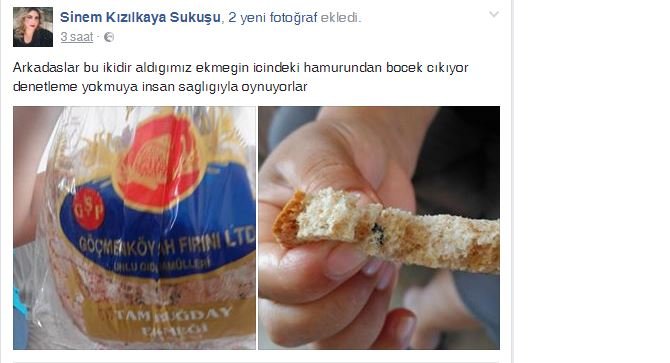 Sinem Kızılkaya isimli vatandaşın sosyal medya hesabından paylaştığı görüntüler halkı şok etti. KKTC'nin tanınmış ekmek üretim firmalarından biri olan "Göçmenköy Şah Fırın LTD"nin ambalajlı ve dilimli ekmeğinden böcek çıktığını iddia eden Kızılkaya, "Arkadaslar bu ikidir aldıgımız ekmegin icindeki hamurundan bocek cıkıyor " şeklinde feryat etti. Denetimsizlikten de yakınan vatandaş, "denetleme yokmuya insan saglıgıyla oynuyorlar" dedi