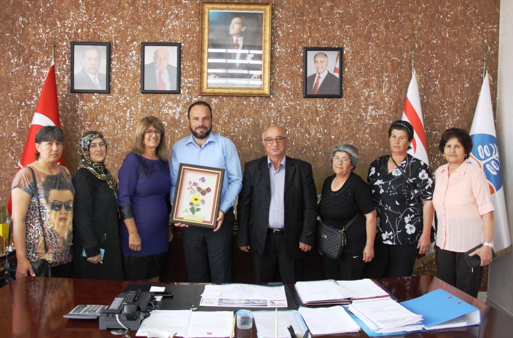 Koza işi, bargello ve deri nakışı ile lefkara işi gibi pek çok el emeği göz nuru esere imza atan Sema Çakmak öncülüğündeki Boğaziçi Köy Kadın Kursu, İskele Belediye Başkanı Hasan Sadıkoğlu’nu ziyaret etti. Ziyarette kadınlar adına konuşan Çakmak, İhtiyaç listelerinin en başında yer alan dikiş makinesini kendilerine armağan eden Sadıkoğlu’na, köy kadın kurslarına yapmış olduğu katkılardan ötürü teşekkür etti.