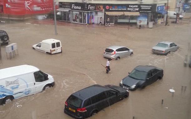 Bugün Gazimağusa'da yağan yağmur özellikle Salamis yolunda hayatı felç etti.