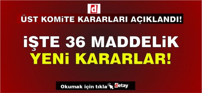 Bakanlar Kurulunca onaylanan Bulaşıcı Hastalıklar Üst Komitesi kararları şöyledir: