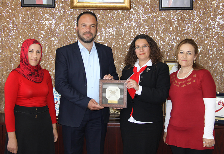 KKTC’nin kadın kooperatifi Dipkarpaz Çok Amaçlı Toplum Merkezi (ÇATOM) Yardımlaşma ve Kalkınma Kooperatifi Başkanı Arzu Pürtül ve üyeler Pakize Köse ile Zeynep Akgün, İskele Belediye Başkanı Hasan Sadıkoğlu’nu ziyaret ettiler.