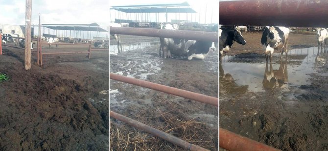 Söz konusu videoda bataklık içinde bir ağıl ve içerisindeki büyük baş hayvanlar yer alıyor. Bataklığa saplanan bir ineğin ise hareket edemediği görülüyor. Ağılda birçok inek bulunurken, manzara içler acısı…