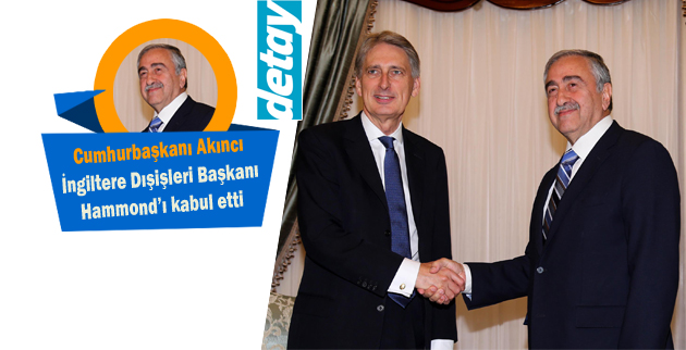Cumhurbaşkanı Mustafa Akıncı, İngiltere Dışişleri Bakanı Philip Hammon ile Cumhurbaşkanlığı’nda görüştü. Öğle saatlerinde yer alan görüşmenin ardından önce Dışişleri Bakanı Hammond, ardından ise Mustafa Akıncı basına açıklama yaptı.