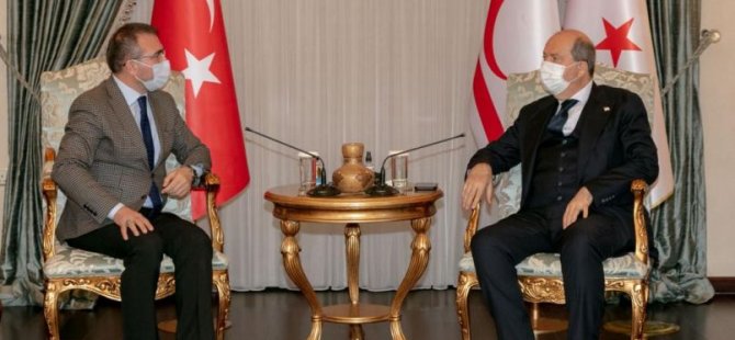 Cumhurbaşkanı Ersin Tatar, EkoAvrasya Yönetim Kurulu Başkanı Hikmet Eren, EkoAvrasya Yönetim Kurulu Üyesi, Başkan Vekili Kemal Kurnaz ve Türkiye Cumhuriyeti Ticaret Bakanlığı Dış Ticaret Uzmanı Ömer Akın’dan oluşan Eko Avrasya heyetini kabul ederek görüştü. Kabulde YÖDAK Başkanı Prof. Dr. Turgay Avcı ile UBP Güzelyurt Milletvekili Ziya Öztürkler de hazır bulundu. Görüşmede yüksek öğrenimin sorunları ile KKTC üniversitelerine yurt dışından daha fazla öğrenci getirilmesi konuları ele alındı.
