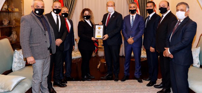 Cumhurbaşkanı Tatar, Doğu Akdeniz Üniversitesi Personel Sendikası (DAÜ Per-Sen) Başkanı Erdal Altun ve Yönetim Kurulu üyelerini kabul etti.