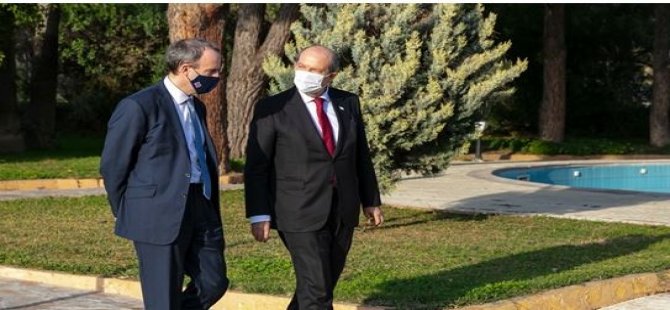 Cumhurbaşkanlığı, Cumhurbaşkanı Ersin Tatar’ın Birleşik Krallık Dışişleri Bakanı Dominic Raab’la görüşmesinde 5+BM toplantısında masaya koyacağı vizyonu anlatarak, Kıbrıs’ta, adil, gerçekçi ve sürdürülebilir bir uzlaşının ancak, iki devletin egemen eşitliği ve eşit uluslararası statü temelinde iş birliğini içeren yeni bir zeminle mümkün olabileceğini ifade ettiğini kaydetti.
