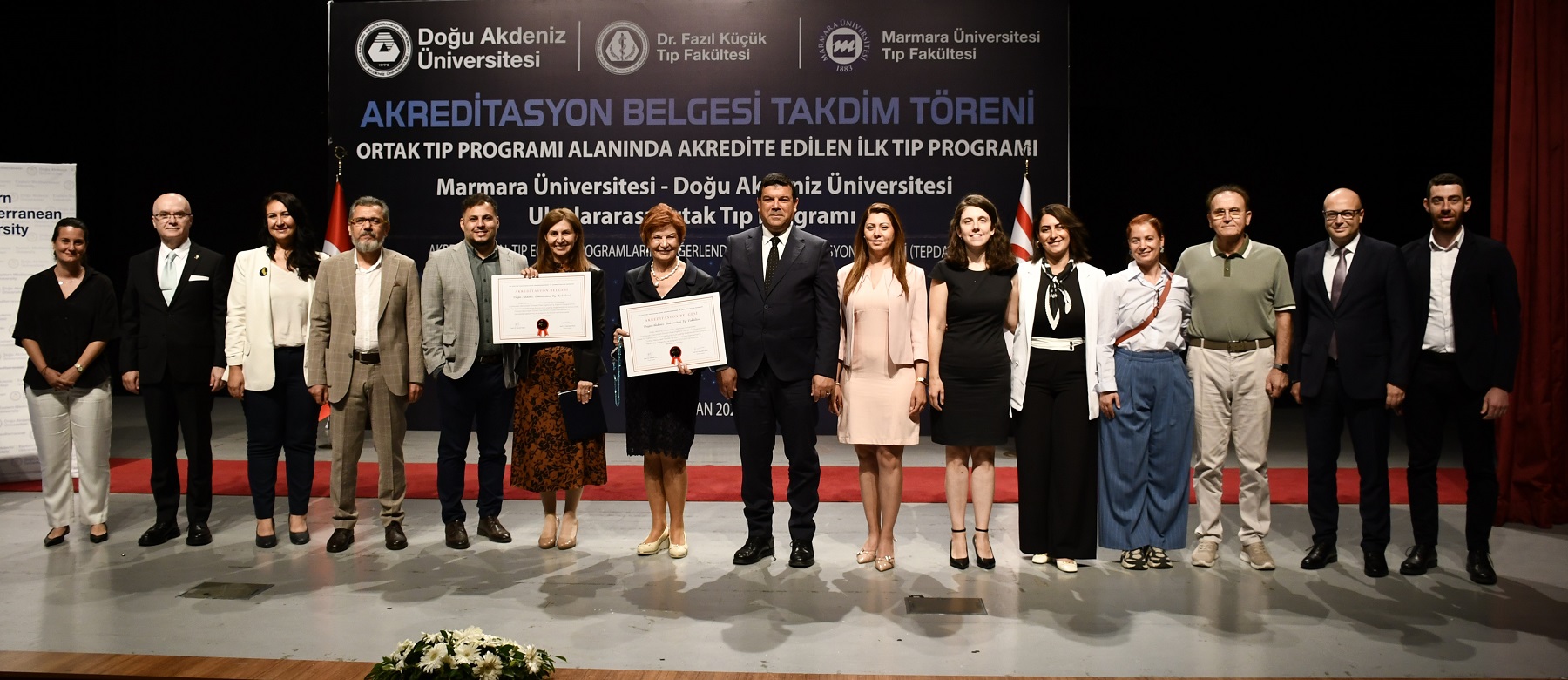 Doğu Akdeniz Üniversitesi (DAÜ) Dr. Fazıl Küçük Tıp Fakültesi ile Marmara Üniversitesi Tıp Fakültesi’nin ortak yürüttüğü Uluslararası Ortak Tıp Programı, Tıp Eğitimi Programlarını Değerlendirme ve Akreditasyon Derneği (TEPDAD) tarafından akredite edildi. Ortak Tıp Programı alanında akredite edilen ilk tıp programı olan DAÜ – Marmara Üniversitesi Uluslararası Ortak Tıp Programı’nın Akreditasyon Belgesi 2 Haziran 2025 Pazartesi günü, saat 09.00’da, Rauf Raif Denktaş Kültür ve Kongre Sarayı’nda düzenlenen takdim töreni ile teslim edildi.
