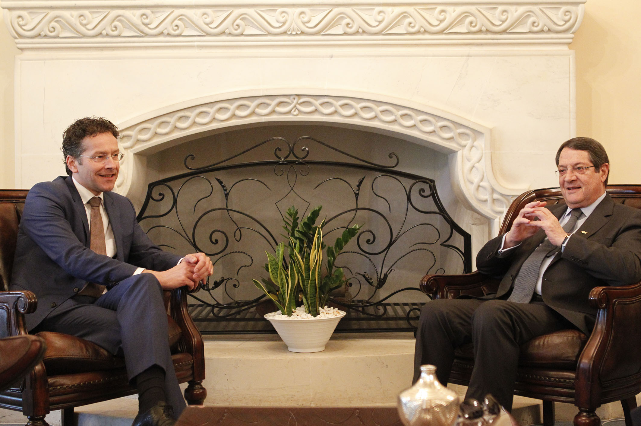 Anastasiades’le görüşmenin ardından basına açıklamalarda bulunan Jeroen Dijsselbloem görüşmenin son derece iyi geçtiğini kaydederek, Anastasiades’le, Kıbrıs için zor kararlar almak zorunda kaldıkları bir yıl önceki görüşmelerini anımsattı.