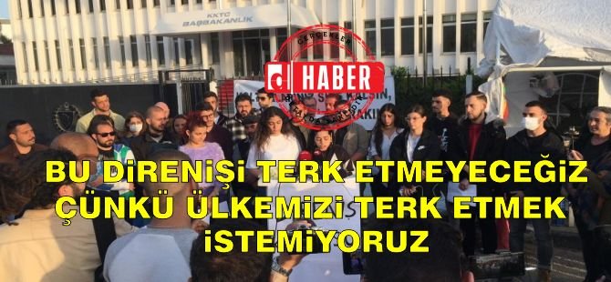 “Bu uzun vadeli taleplerimiz ile alakalı izleyeceğiniz yol haritasını da bizlere yazılı olarak iletmenizi istiyoruz! Bize vereceğiniz cevap eylem planımızda ve direniş nöbetinin geleceğinde karar verici olacaktır. Geçmiş icraatlarınız bize güven vermiyor. Günden güne kötüye gidiyoruz. Bunu sizin görmediğinize inanmıyoruz. Size güvenmiyoruz. Siz yapamıyorsunuz. Bizi aydınlık yarınlara taşıyamayacaksınız! Bunu istemiyorsunuz. Bu ülkenin aydınlık insanları var. Bu ülkede dürüst, çalışkan, toplumsal gailesi olan insanlar var. Bu ülkede gailesi memleket olan insanlar var! Kıbrıslı Türklerin dünyaya entegre olmasını sağlayacak çözüm planınızı bize hemen anlatın. Tekrar ve tekrar hatırlatıyoruz! Direniş nöbeti tam 1 haftadır devam ediyor. Ve bu süreçte biz bu direnişi terk etmeyeceğiz. Çünkü ülkemizi terk etmek istemiyoruz. Direnmeye devam edeceğiz. Sizden rica ediyoruz, akıl ve bilim temelinde planlama ile bize gurur duyulacak bir ülke bırakın! Ankara'nın Kıbrıslı Türklerin seçme ve seçilme hakkına yapılan müdahalelerini kınarken, bu müdahalelerin bir an önce sonlandırılmasını istiyoruz. Geleceğimizin Kıbrıslı Türklerin kendi iradesiyle şekillenmesini istiyoruz. Maaşlarınızda gözümüz yok! Bu icraatları siz hayata geçirin, koltuklarınız size kalsın! Geleceğimizi bize bırakın!”