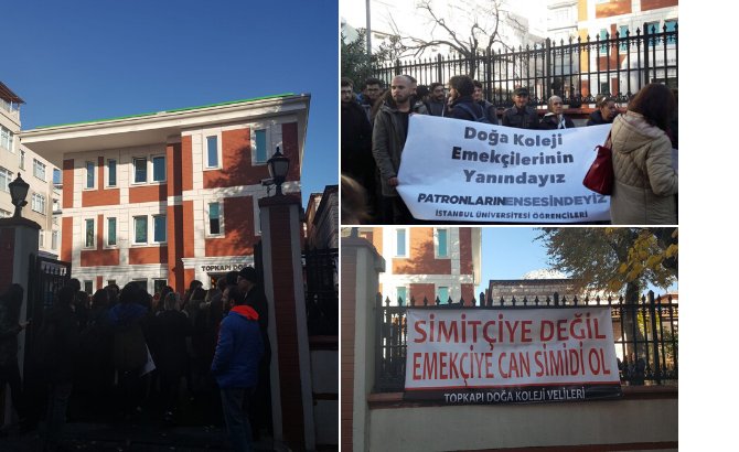 Doğa Koleji İstanbul Güneşli, Avcılar, Sarıyer, Topkapı, Kurtköy, Büyükçekmece, GOP ve Batışehir Bağcılar kampüslerinde öğretmenler boykotun ikinci gününde. Güneşli Kampüsü'nde temizlik ve güvenlik personeli çalışmıyor. Avcılar Kampüsü'nde dünden beri lisede öğretmenler derse girmiyor. Sarıyer Kampüsü'nde lise ve ilkokul öğretmenler iş bıraktı. İdare öğrencilere izni verdi. Öğrenciler öğretmenlerine destek mesajlarını sınıflarının kapısına astı.