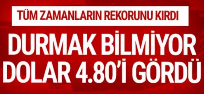 Dolar dün gece bir kez daha rekor üstüne rekor kırdı. Dün 4.54'e kadar inen dolar Türk lirası karşısında bir kez daha atak yaparak uluslararası piyasada 4.80'e kadar çıktı.