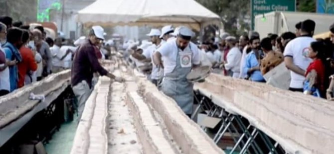 Hindistan’ın Thrissur kentinde, 1500 aşçı ve fırıncı bir araya gelerek 6.5 kilometrelik bir pasta yaptı.