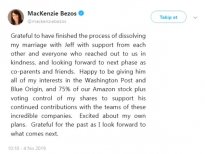 Amazon'un kurucusu ve Washington Post'un sahibi Jeff Bezos ile MacKenzie evliliklerini bitirme kararı almıştı.