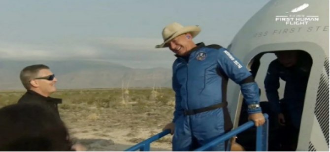 Milyarder iş insanı Jeff Bezos’un şirketi Blue Origin'in geliştirdiği ve Bezos dahil 4 kişiyi taşıyan New Shepard uzay aracı ABD'nin Teksas eyaletinden uzaya fırlatıldı. Kapsül 11 dakikanın ardından Dünya'ya döndü. Tarihteki ilk "mürettabatının tamamı sivillerden oluşan ve pilotsuz uzay uçuşu" olma niteliği taşıyan yolculukta, Bezos'a kardeşinin yanı sıra 82 yaşındaki Wally Funk ve 18 yaşındaki Olivier Deamon eşlik etti. Bununla birlikte, Bezos Richard Branson'un ardından Bezos, uzaya çıkan 2. milyarder oldu.