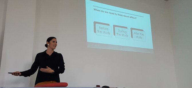 Doç. Dr. Çise Çavuşoğlu, “Eğitim Bilimlerinde Etik Araştırma” başlıklı seminerde, araştırma etiği hakkında detaylı bilgi vererek, güncel örneklerle özellikle etik başvuruları ve bilimsel çalışmaların yanı sıra etik açısından dikkat edilmesi gereken konular irdelendi.