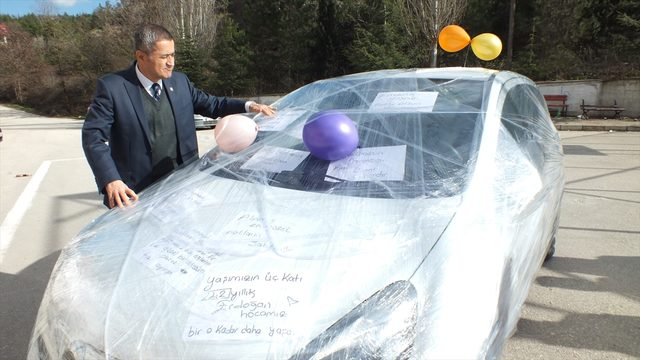 Okulun 12/A sınıfı öğrencileri, aracın ön camı ve kaputuna, öğretmenleriyle ilgili duygu ve düşüncelerini yazdıkları kağıtlar yapıştırdı. Sonrasındaysa otomobili streç filmle kapladı. Bir süre içeride bekleyen Aytan, dışarı çıktığında aracının streç filmle sarıldığını gördü. Yapılan sürpriz karşısında duygulanan emekli öğretmen, öğrenciler tarafından omuzlara alınarak uğurlandı.
