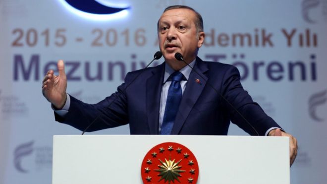 İstanbul'da Fatih Sultan Mehmet Üniversitesi mezuniyet töreninde konuşan Cumhurbaşkanı, İngiltere Başbakanı David Cameron'un 'Türkiye 3000 yılına kadar AB üyesi olamaz' sözlerini eleştirerek "Bir araya geldiğimiz zaman sen böyle konuşmuyordun Cameron... Öyle demiyordun bize. Hep bize söylediği şuydu, 'Her zaman yanınızdayız, bir an önce Türkiye'nin Avrupa Birliğine girmesi için her türlü gayreti gösteriyoruz'. Ne oldu şimdi?" dedi.