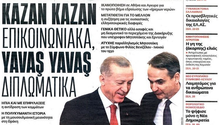 Muhalefet yanlısı gazetelerden Efimerida Syntakton'a göre Erdoğan ve Miçotakis, "İletişimde kazan-kazan, diplomaside yavaş yavaş taktiği uyguladı". Gazete, kazan kazan ve yavaş yavaş kelimelerini Türkçe ve Yunanca yazdı.
