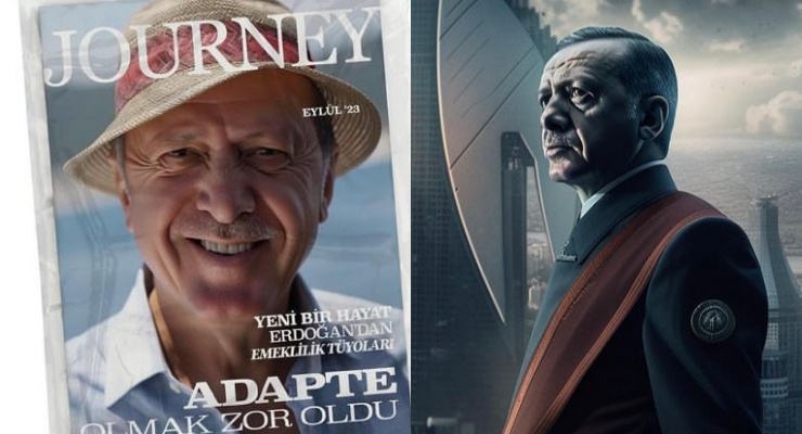 14 Mayıs seçimlerinden sonra seçimi kaybedip ’emekliye ayrılan’ ya da kazanıp ‘galaksi başkanı’ olan iki ayrı Erdoğan’la yapay zeka programları üzerinden söyleşi yaptı, fotoğraflar üretti.