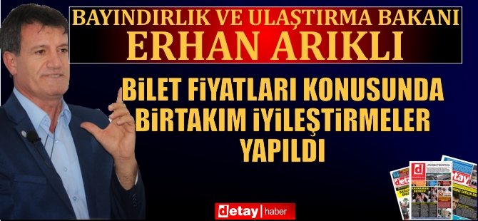 Bayındırlık ve Ulaştırma Bakanı Erhan Arıklı, Meclis Genel Kurulu’nda Türk Hava Yolları'yla bilet fiyatlarının nasıl aşağıya indirileceği noktasında görüşmeler yaptıklarını ve birtakım iyileştirme yapıldığını söyledi.