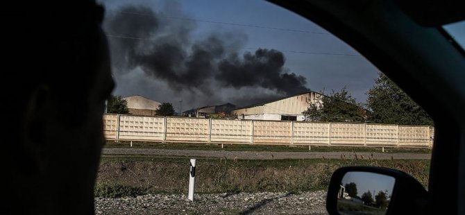 Ermenistan, Berde şehir merkezini vurdu. İlk belirlemelere göre, füzelerin isabet ettiği çok sayıda dükkan ve araç yanıyor.