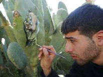 Filistinli genç sanatçı Ahmed Yasin kaktüs bitkisinin yapraklarını bir tuval gibi kullanarak yaptığı mükemmel çizimler ile acılı ülkesi Filistin'i anlatıyor.