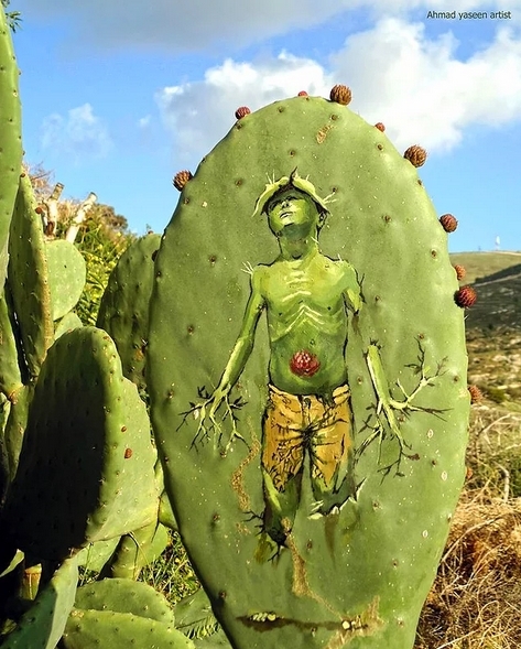 Filistinli genç sanatçı Ahmed Yasin kaktüs bitkisinin yapraklarını bir tuval gibi kullanarak yaptığı mükemmel çizimler ile acılı ülkesi Filistin'i anlatıyor.
