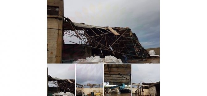 ‘İki Buçuk Mil’ olarak bilinen bölgede faaliyet gösteren tık madde geri dönüşüm fabrikasının fırtınadan ötürü dün akşam çatısı uçtu.