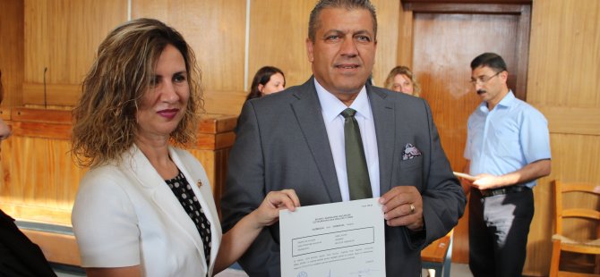 Gazimağusa Belediye Başkanlığı’na yeniden seçilen Arter mazbatasını aldı