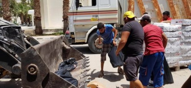Bonfile, antrikot, dana but, dana döş ve bifteklerden oluşan büyük baş sığır etleri Gazimağusa Polis Müdürlüğü avlusunda belediye ve gümrük çalışanları tarafından kamyondan indirilip Gazimağusa Belediyesi’ne ait kepçe ile Gazimağusa Belediyesi’ne ait kamyona yüklendikten sonra Gazimağusa veteriner birimi tarafından ilaçlanıp imha edilmesi için Gazimağusa çöplüğüne götürüldü.