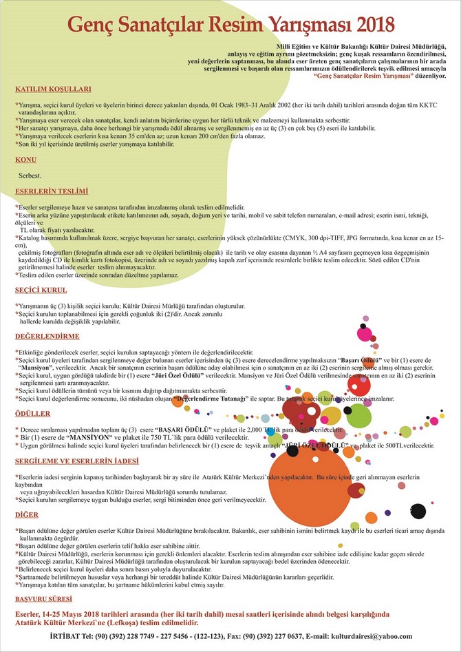 ressam ve resim sanatına ilgi duyan KKTC vatandaşları katılabiliyor. Kültür Dairesi’nin kayıtlı mail