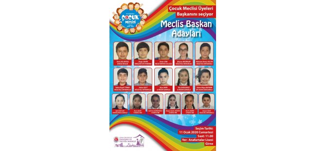 Çocuk Meclis Başkanı adaylarının isimleri şöyle: