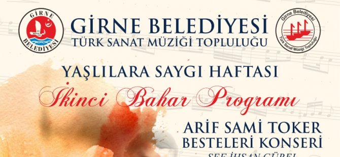 Girne Belediyesi Türk Sanat Müziği Topluluğu (TSM), İkinci Bahar Programı kapsamında “Yaşlılar Haftası” nedeniyle 20 Mart Pazartesi akşamı konser düzenliyor.